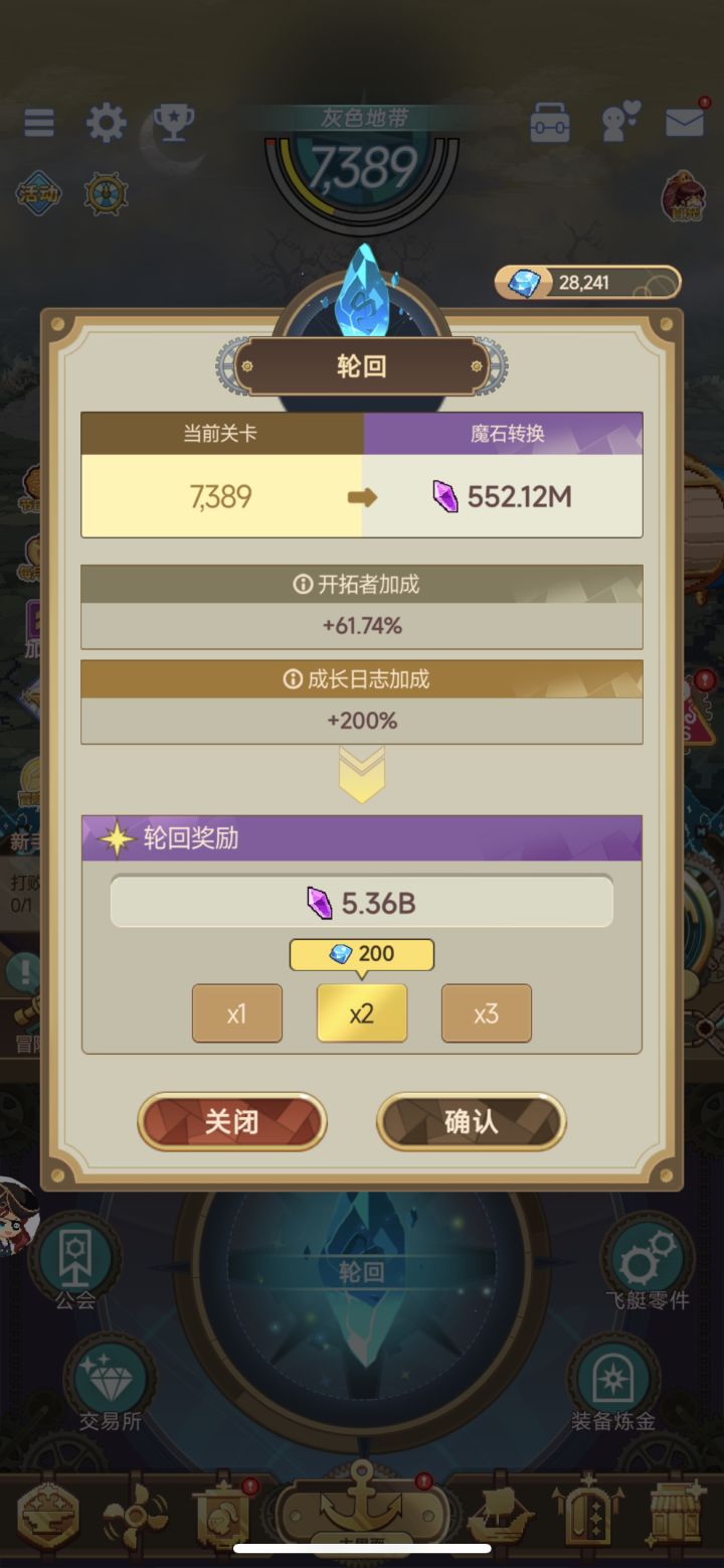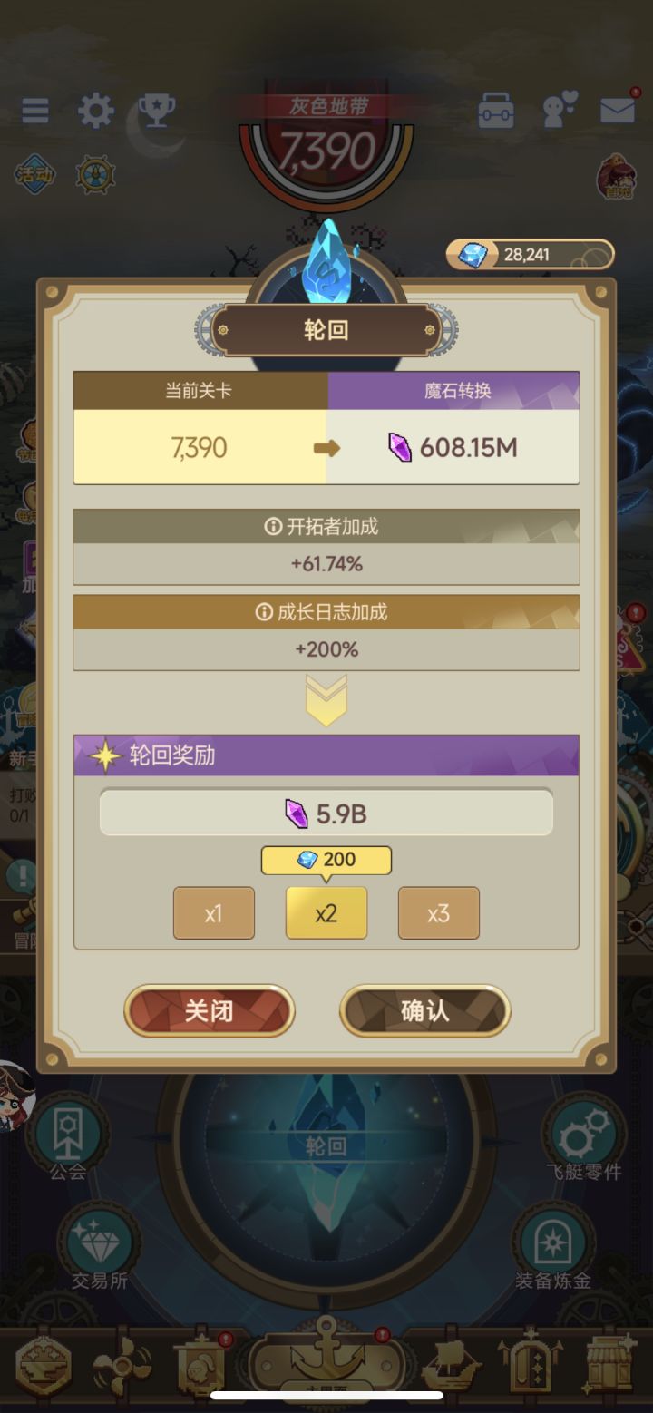 但是也不可太低层数轮回,因为每1000关经验加成是不同的,前面加的少,6000关后每90关加成经验20M,7000关后每90关加成经验50M,再经过成长日志系数和开拓者加成放大就会形成较大的经验差距,尽可能的多推后面的关卡再轮回收益更大.