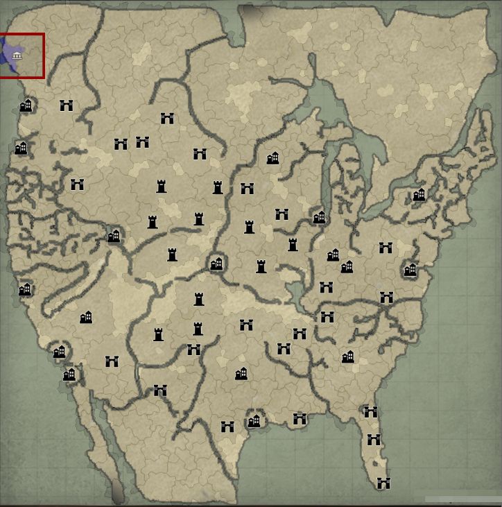 每片区域还存在有重兵把守的州核心城市,分布在大陆各处。