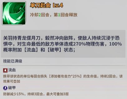 致尊敬的调查员,无双英雄【关羽】是冒险旅途中一名强而有力的战将。关羽有着相当优秀的输出性能,技能伤害不凡的同时可以挂风系的流血状态;自身可以附加破甲效果,增加队伍的输出上限;击杀回血机制更是为自身提供了一定的续航能力。所以在配队方面更加宽泛,不会有特殊的机制限制,尽可能将输出最大化就是唯一方向。