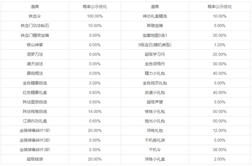 3、每次开启铁血秘宝必得【铁血令】,同时获得4件奖励;