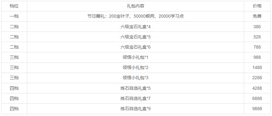 活动一:活动期间将限时上架节日礼包,礼包内容如下: