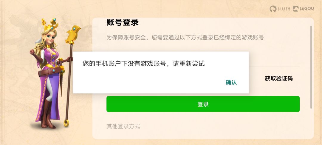 老子也是醉了,卡在账号登录这里了,下载游戏,打开尼玛就弹出来登录游戏,输了手机号又说手机账号下没有游戏账号,返回也返回不了,只有直接退出游戏,老子也是™的醉了,尼玛一个注册功能都没有?还是说打10086给我手机号里面充一个游戏账号?