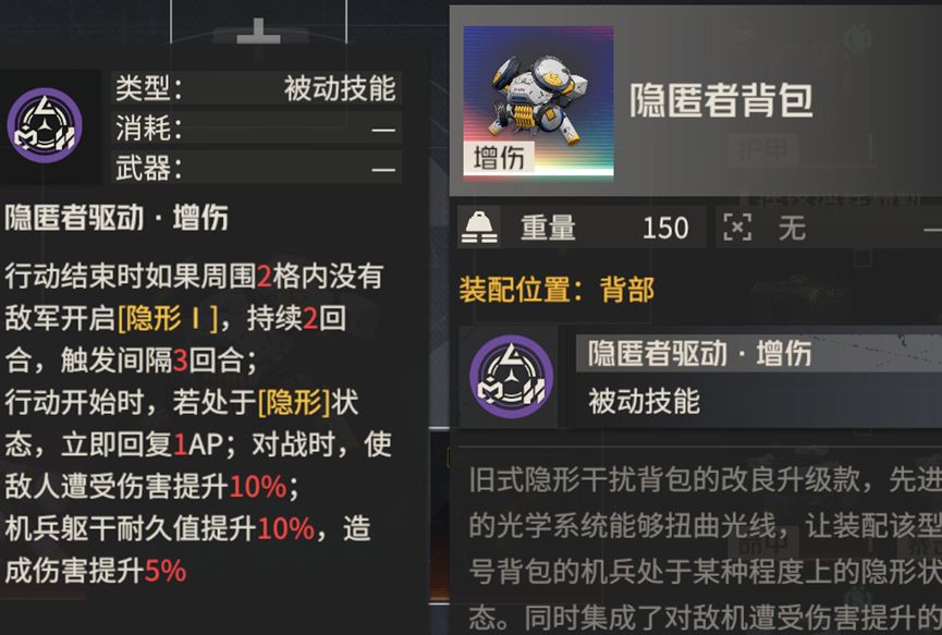 另一个背包是隐匿者背包。关于这两个背包的使用,笔者后续会详细分析