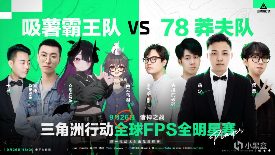 威龙阵营天才左神小叮当、永远滴神Uzi、绝地枪神Godv、守望之神Leave将带头冲锋,迎战红狼阵营烈焰天使奥拉夫、传奇狙神kennyS、初代枪神GeT_Right狗头人、六道狙神Allu。无论喜欢跳伞、刚枪还是搜打撤的朋友,都欢迎来三角洲的战场打上一把。9月26日晚18:00,全网锁定《三角洲行动》官方直播间,全球FPS全明星赛见!