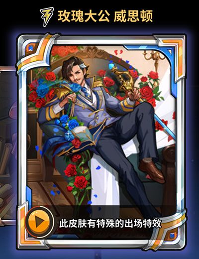 温馨提示:本次卡牌皮肤【玫瑰大公 威思顿】将同时上架皮肤商城与活动商店「玫瑰大公 威思顿」礼包售卖,重复购买获得的皮肤将会自动分解成金币!