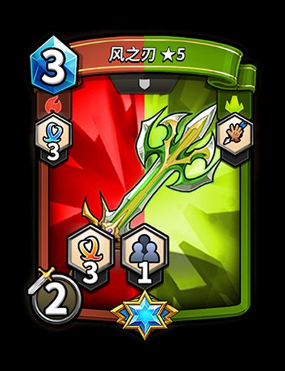 「风之刃」为战争(红)与自然(绿)双阵营精英道具卡。