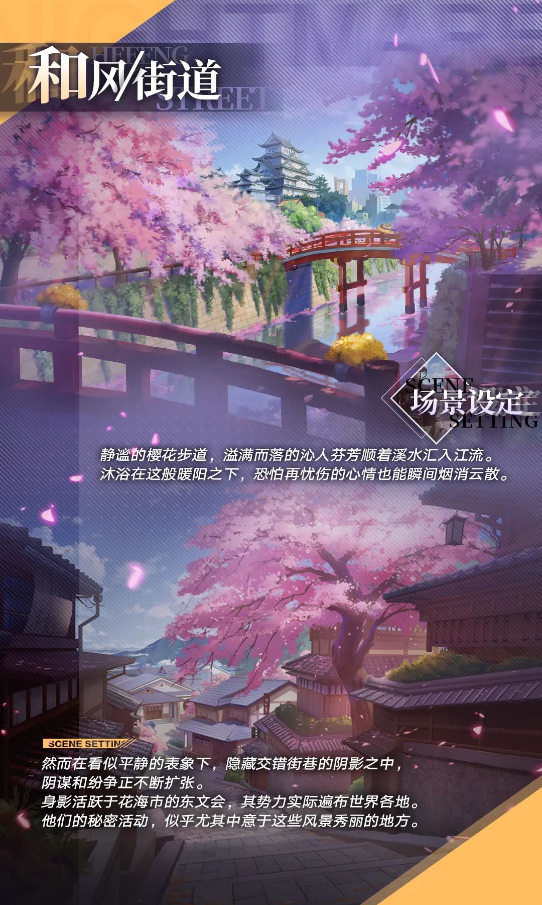 首先映入眼帘的便是一条樱花步道,漫天飘舞的樱花落入旁边潺潺流动的溪水,整个河流都被染成了粉红色,散发着沁人心脾的芳香。漫步在暖阳铺散的街道上,看着交错的小巷一路延伸至深处,一想起那神秘的组织就矗立于此,静谧的美景中似乎充斥着些许肃穆紧张的气氛。