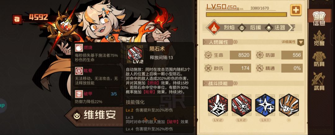 薇薇安定位是副c,帮沙拉曼挂燃烧,频繁释放自动技能触发沙拉曼被动同时打一些伤害,并且非常契合天罚之日。