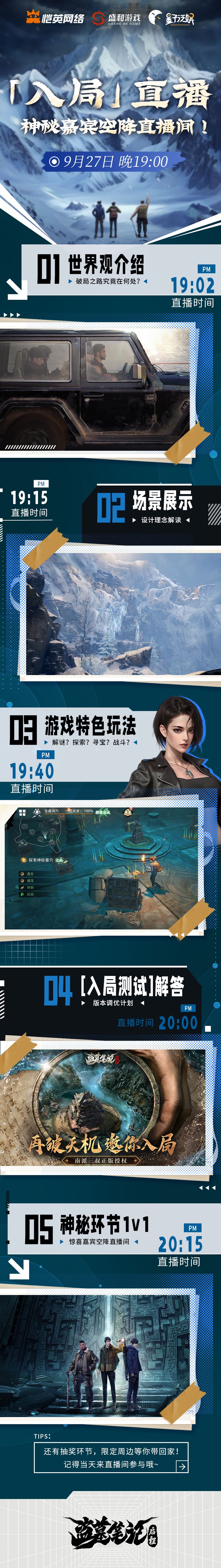 即日起至9月27日直播开始前,预约游戏,并在本条动态下方留下你对游戏的祝福或建议、或你想对策划提出的疑问,随机抽取3名幸运九门后人分别送出1套盗墓笔记正版周边好礼(内含随机透卡/立牌/吧唧各1)!