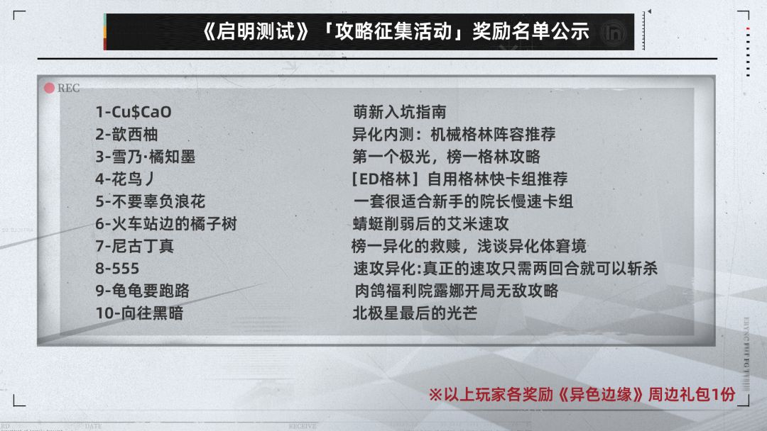 【异色边缘】「启明测试」「攻略征集」获奖名单公示