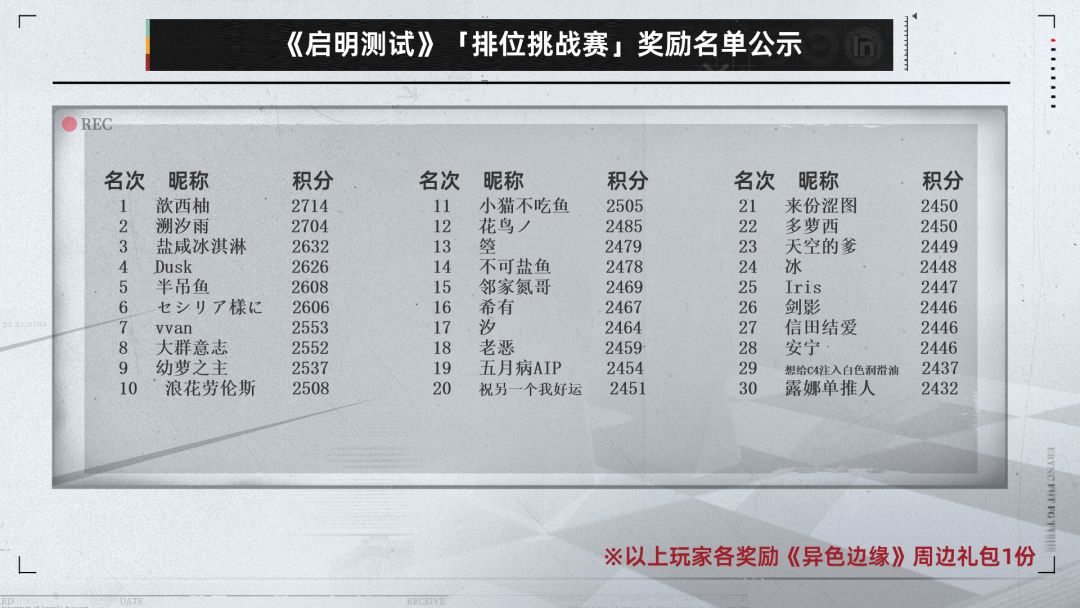 【异色边缘】「启明测试」「排位挑战赛」获奖名单公示