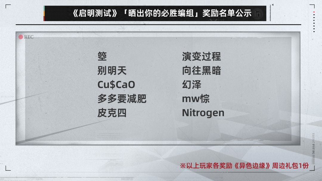 【异色边缘】「启明测试」「晒出必胜编组」获奖名单公示