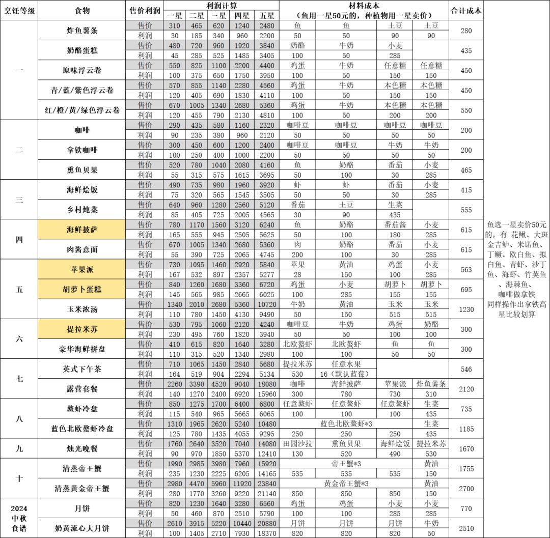 心动小镇烹饪利润大全