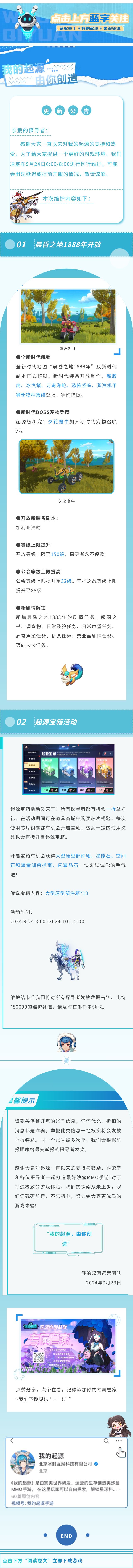 《我的起源》9月24日更新公告,新时代晨昏之地1888年开放!