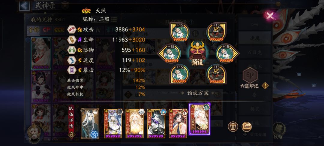 阵容配置:贝吹坊土蜘蛛天照,速攻暴/爆满暴