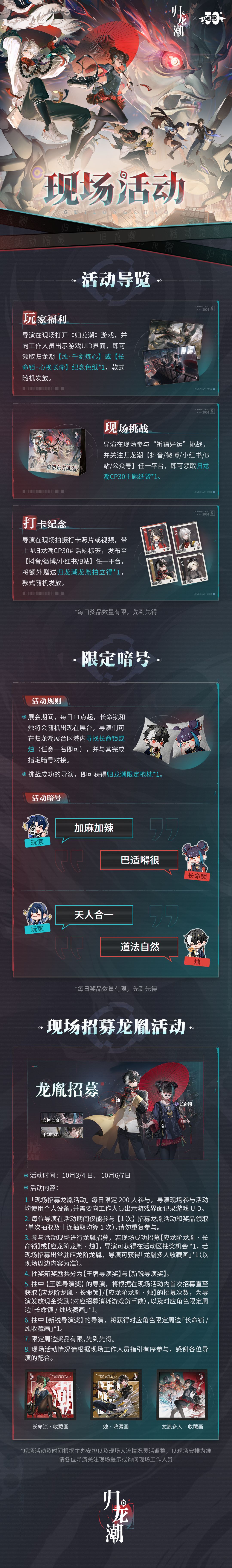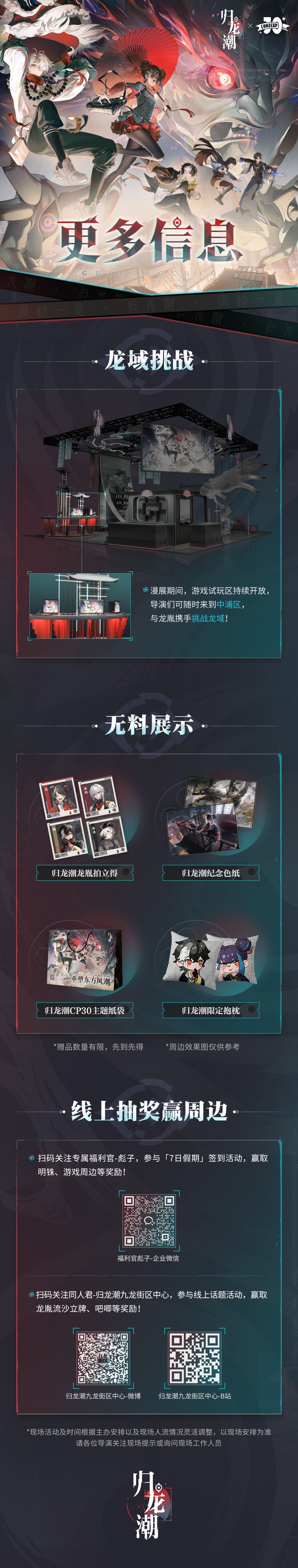 ✦参与现场活动,还有机会领取超多无料!龙胤纪念色纸、归龙潮CP30主题纸袋、归龙潮龙胤拍立得、归龙潮限定抱枕奖励!