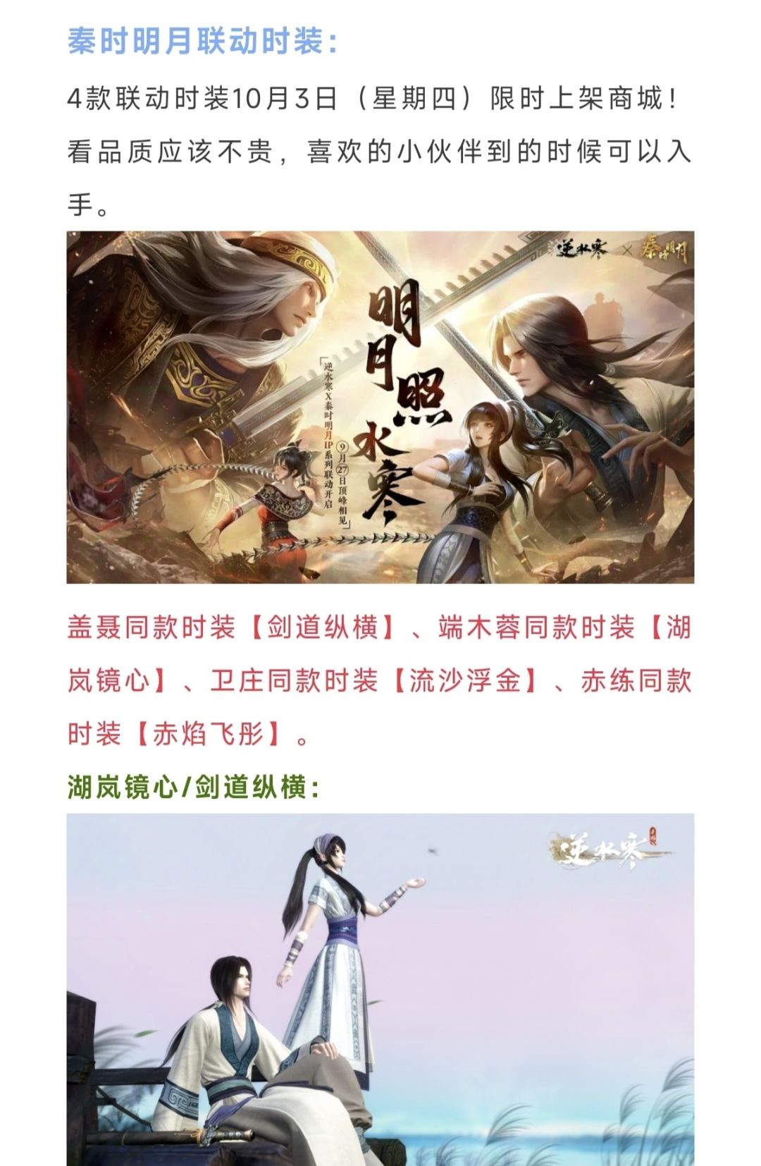 时装、剧情、装备、活动,秦时明月联动