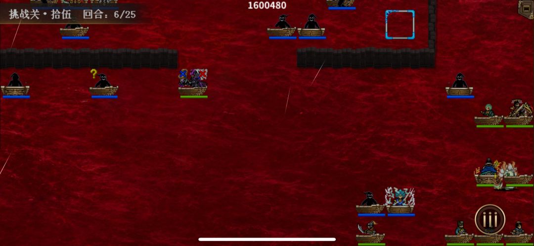 第5回合站位如图,魏延他们就是炮灰,堵影子尽量少减员的,对面回合敌人走位如下,下面的赛亚人和影子一个朱雀带走,然后诸葛亮就盯着赛亚人给混乱,吕布清影子(尽量让吕布一个先手带走一个,我属性低,先手打不死要加一个反击,sl别让吕布被混乱了就行),浮生解放出来了可以去绕圈引雷震子了,回归诸葛亮清路上的小兵,别让他们碰到浮生,避免被天眼打死