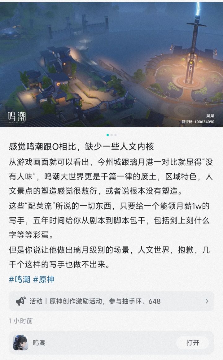 这个帖子的发言倾向拉踩蛮严重的,最主要利用的其实是【错位对比】即鸣潮和原神世界观差异是巨大的,两边侧重的重点是完全不同的,以一边的重点去打另外一边多多少少有点【舍本逐末】。