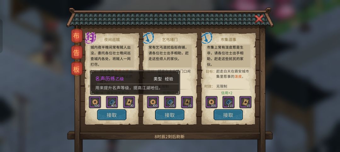 客栈打听楚襄英雄会,找楚襄武馆馆主报名,胜利后前往衙门报名参加,获胜后得到扬名立万,名声+2300