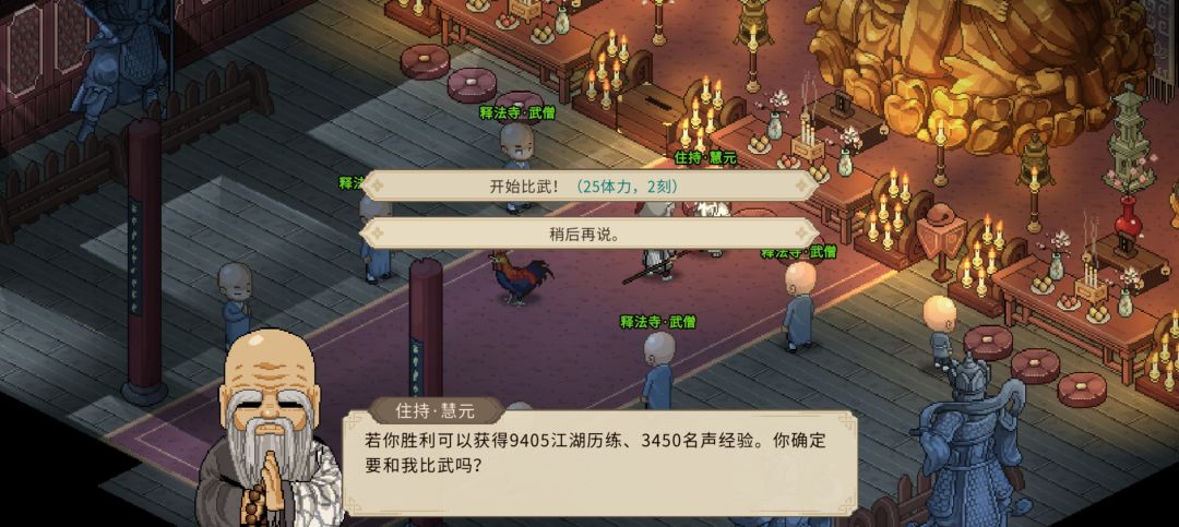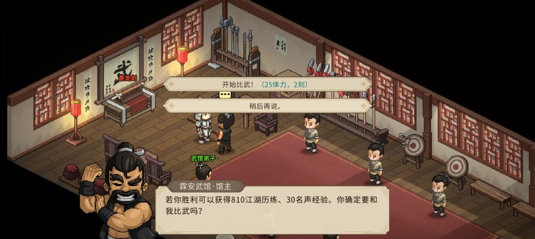 和江湖npc或者武馆馆主,掌门等比武可获得名声经验(搭配配饰特性效果更佳,目测挑战名声等级高的名声经验越多)