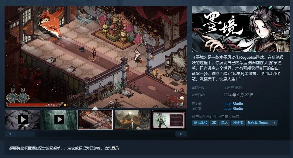 初识聊天的阿戴,给我一种独游制作人特有的乐观幽默,他是犁浦工作室的负责人,其制作的首款水墨风动作Rogue游戏《墨境》即将在9月27日正式发售。