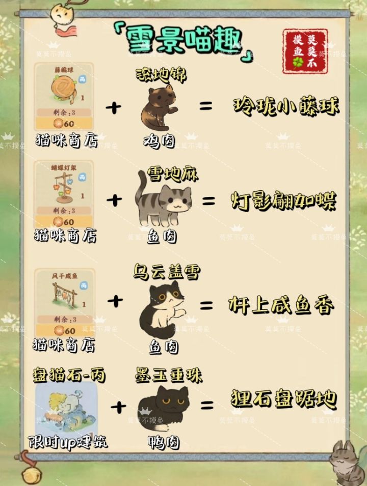 ✔️解锁条件:冬天雪地时!摆放喜好建筑+投喂对应猫咪,等待猫咪玩耍后触发。(现在萌宠小苑可以直接邀请猫咪来家园玩耍,解锁变得更简单了)