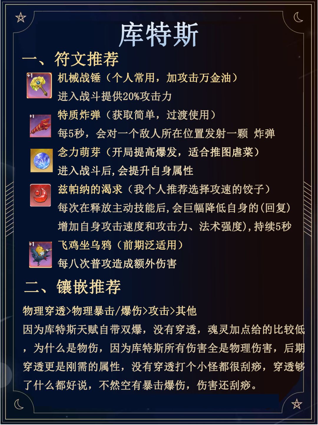 库特斯的专武,进一步的提升了库特斯的输出能力,耐人寻味的是攻击持续到下次普通攻击,这时候看看你是否为了包饺子而买半瓶醋,舍弃一部分攻速输出,换取这个被动,值吗?