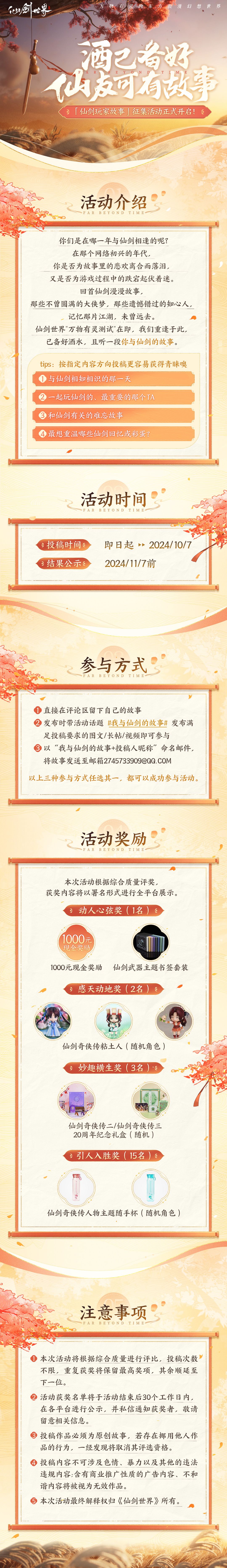 ■预约并关注游戏,在评论区分享您的小故事,将额外抽取3位幸运仙友送出仙剑精美周边~