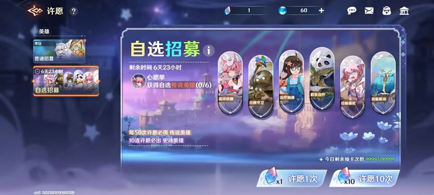 3.正常升级推主线,有抽数一定优先抽自选招募,每个英雄最多被抽中2次,相当于可以保底3只二星英雄。但是尽量用送的抽数抽,不要拿钻石买抽数(后面会有用)