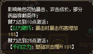 10臂力:暴击伤害增加15%