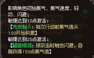 每1点敏捷提升初始集气值、1点集气速度(固定值)、0.5%闪避(固定值)、0.5点轻功/每级(每50点轻功加1点集气速度)