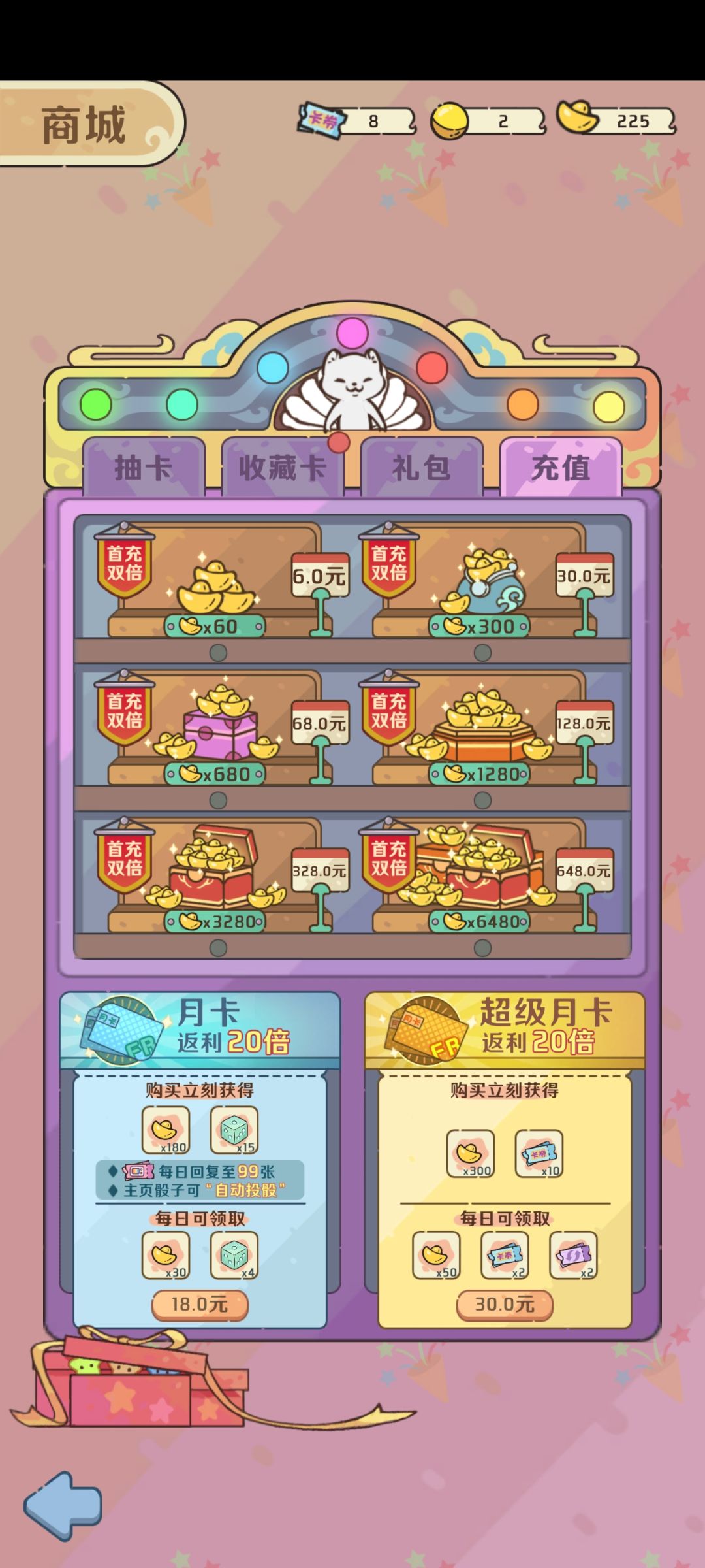 这款游戏的主玩法是以大富翁掷骰子走格子的形式,在此基础玩法上增加了【抽卡】【通行证】【排行榜】等元素,各位玩家自行检索避雷。