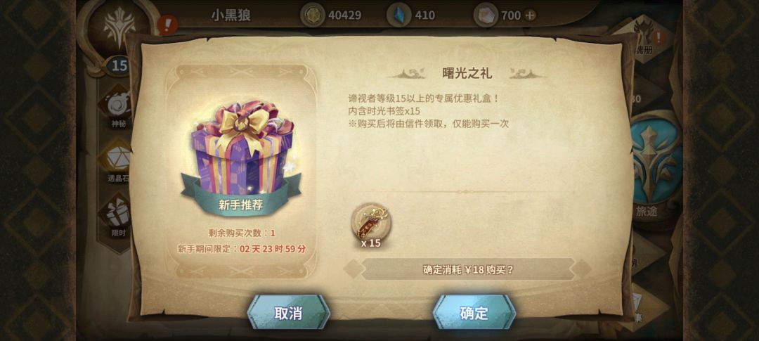 ¥18曙光之旅(15级后可购买):红书签价值¥75——我倒欠雷亚¥57