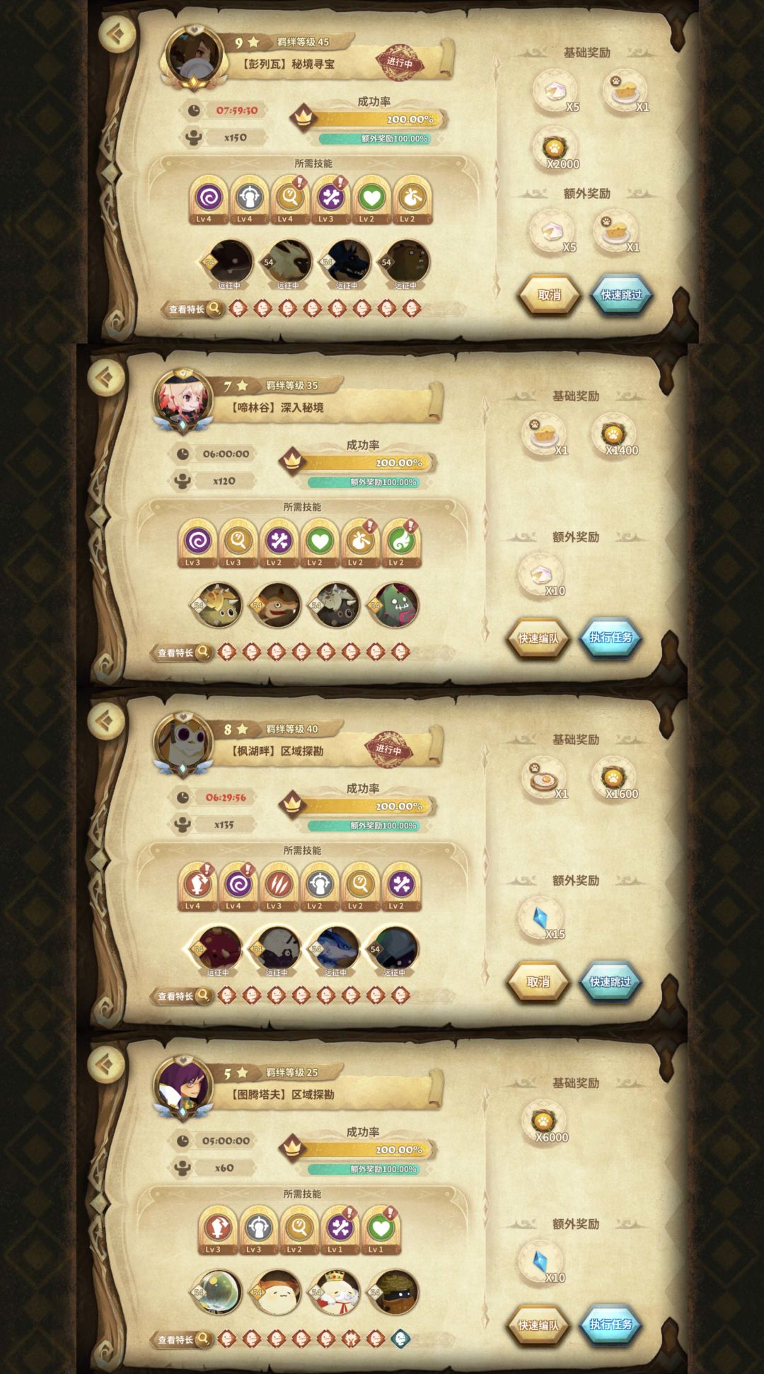 如果你觉得挑战和探索太难,罚站太久,不想打,配队研究太麻烦。我建议你,直接抄常规阵容作业,凑齐一整队体系队伍之后,再回来直接数值碾压,基本上轻轻松松;即使是没有拉满的体系队,也能轻松跨等级碾压,常规队伍操作也是非常简单的。