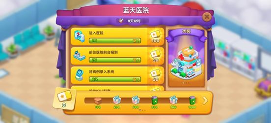 完成主线任务,帮助蓝天医院新来的实习医生贝拉治疗患者,通过各个科室的考核,可以获得活动奖励哦!
