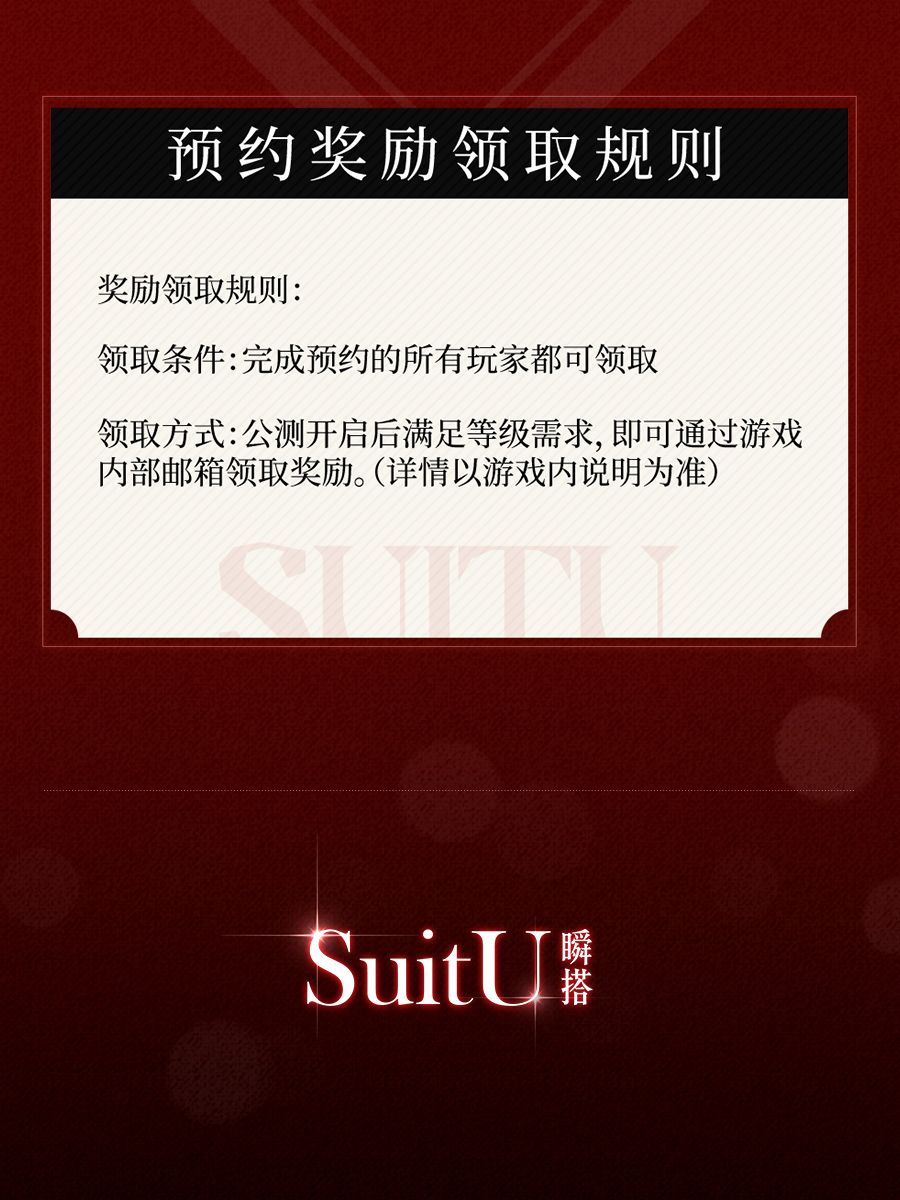 参与本次预约的SU博主们在游戏正式开放下载体验之后,可以获得预约独占的称号、精美服装部件多重奖励!