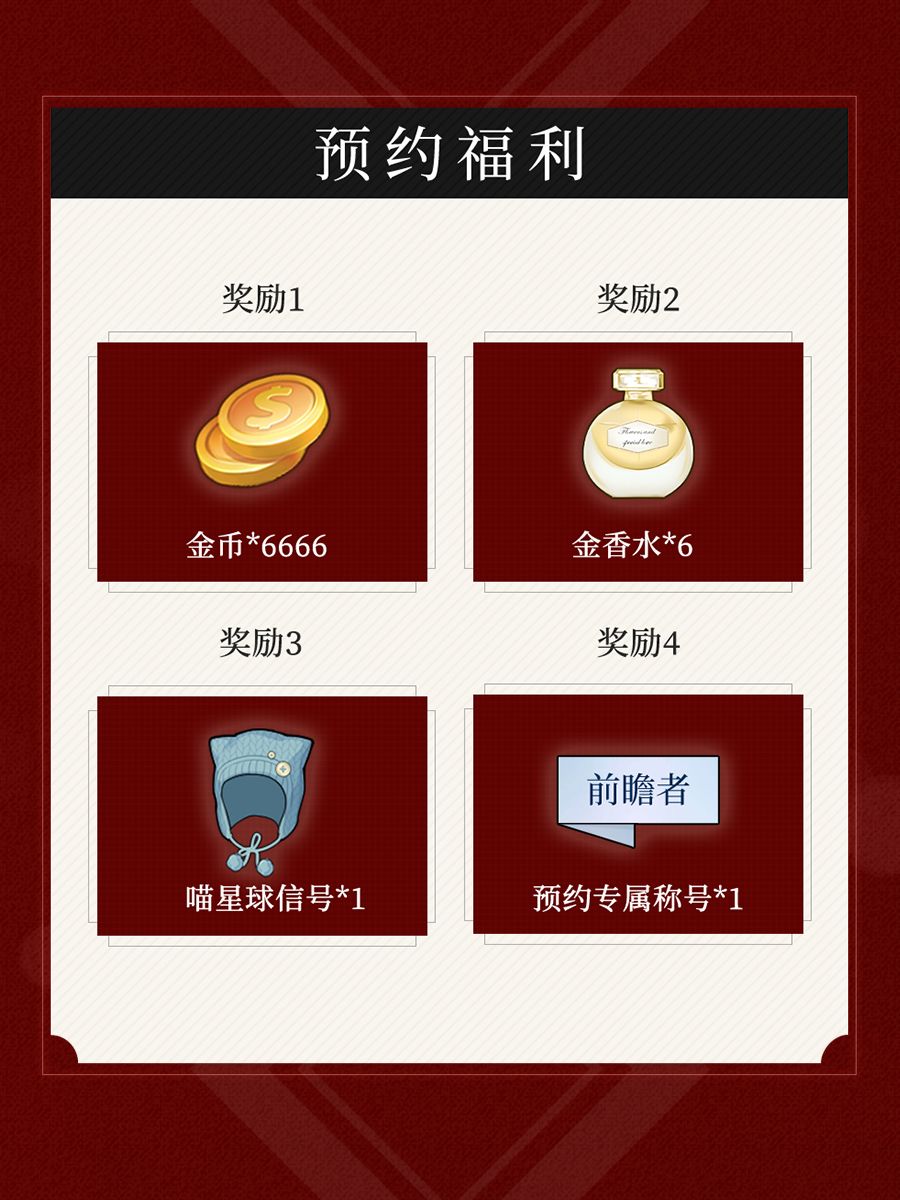 《瞬搭SuitU》现已正式开放预约,预约即可获得「金币 × 6666」、「金香水 × 6」、「“前瞻者”称号Ⅰ×1」、「帽子部件“喵星球信号”×1」奖励,