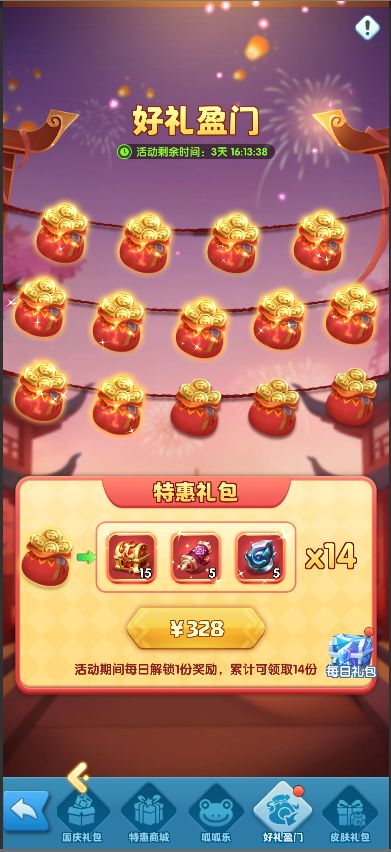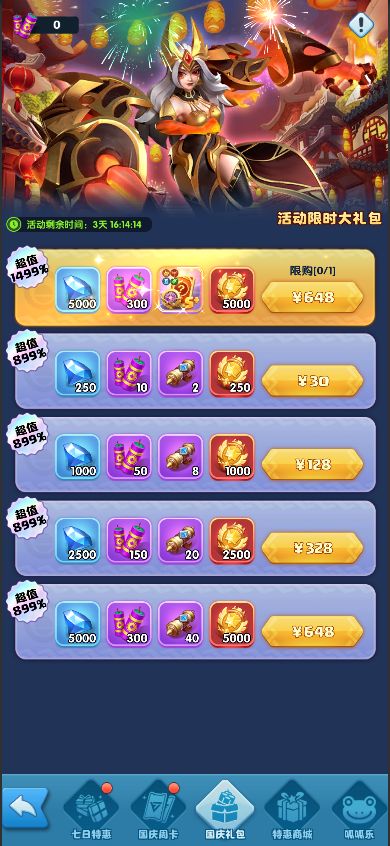 活动期间,开放国庆礼包的购买。