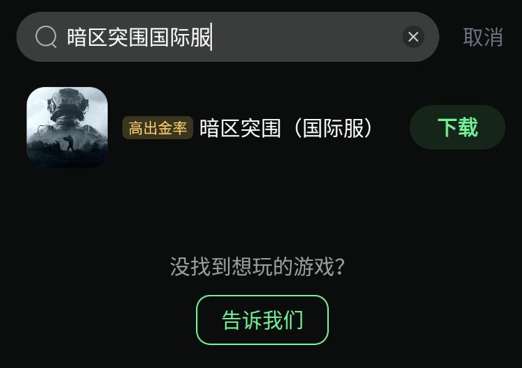 第二步:在奇游内搜索【暗区突围国际服】即可下载游戏(如果提示游戏未安装,则说明奇游非官网版本哦~)
