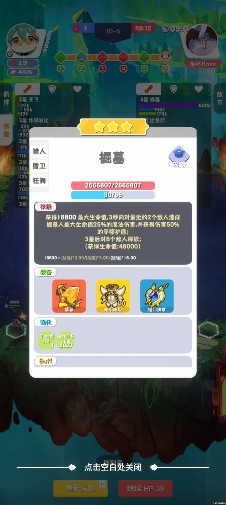 忘记忘记截图了,只有一个boss开完技能之后的属性,和一个通关截图。
