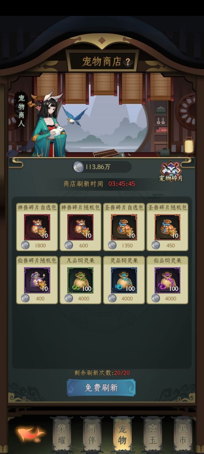 2.灵兽的获取方式:幻月秘境、太虚秘境、运营活动、宠物商店