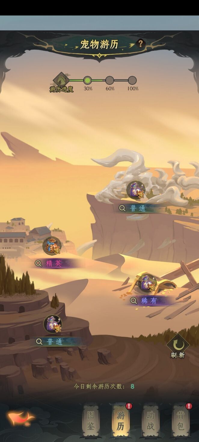 3.宠物游历:宠物游历也是获取碎片随机包以及升级道具的重要方式,重点是免费,所以每天要注意时间去游历的呢