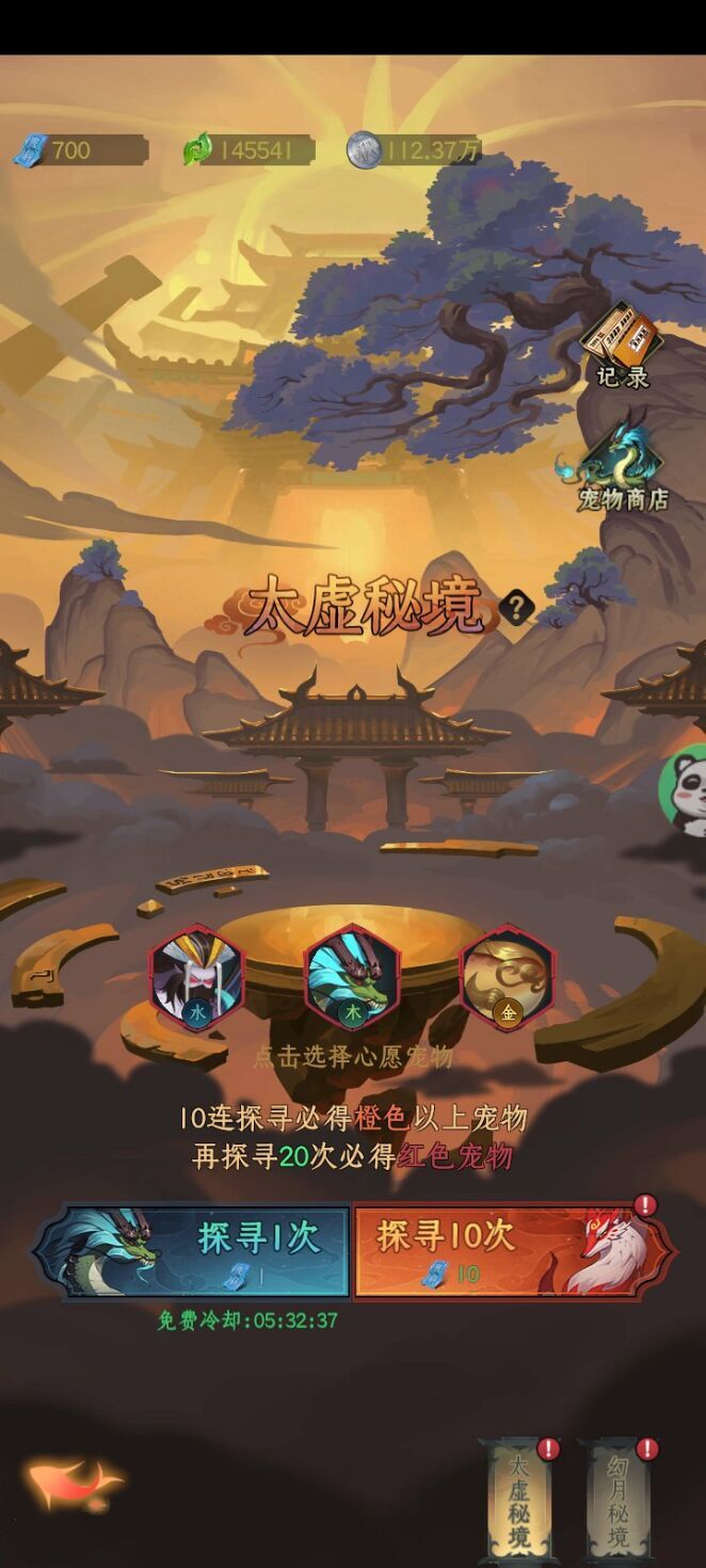 (2)太虚秘境是比较中后期的秘境,一般出的是仙兽、圣兽和神兽,并且心愿宠物可以选择三个不同属性的神兽,其他同上一样