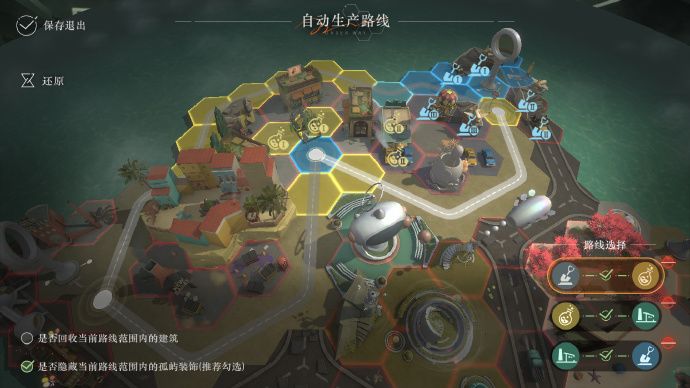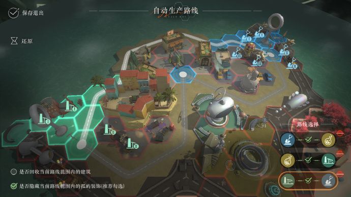 注意,建筑会随着等级上升逐渐开放,目前许多其他路线规划的空间都太小了。我的进度放在图5,用这个线路设计可以放下目前所有的魔精建筑,包括休息区和交易中心。