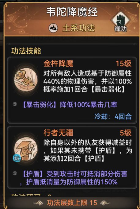 最后技能搭配:韦陀降魔经为主力技能,白嫖技能,获取方式比较随机,可能随机哪天就出来了。其次搭配撼岳战典双爆发伤害并且受到暴击伤害的时候提高防御力,要么就搭配玄岩咒录,第一个是给队友护盾,最主要的还是被动技能血量越低防御越高,对禅修来说也就是伤害越高。