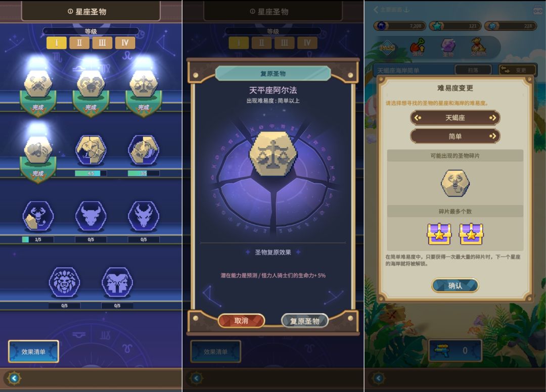 每一张地图可以产出不同类型/不同稀有度的圣物;圣物会根据类型和稀有度对角色有不同幅度的加成,难度越高的地图挖圣物难度越大,但同时圣物带来的各方面收益也相对越高(前提是能挖出圣物)