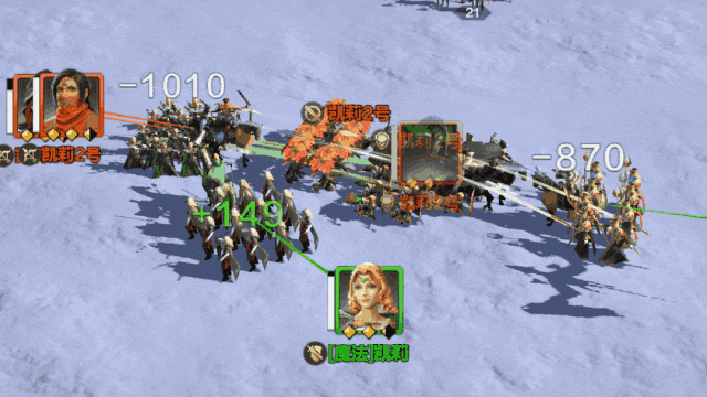 ▲战斗中如果我方兵力陷入劣势,可以利用【永恒寒冬】冰冻部分敌方队伍,进而暂时形成以少打多的优势局面,而后逐个击破。