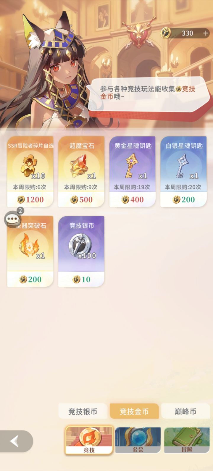 2.金币商店:ssr碎片价格上升后性价比不高,前期超魔宝石非常缺乏,建议换满,随着后续爬塔资源的提升,根据魔导水晶和超魔宝石的产出比来选择是否继续兑换;若是宝石仍旧急缺,换宝石,若是宝石溢出,换星魂钥匙。