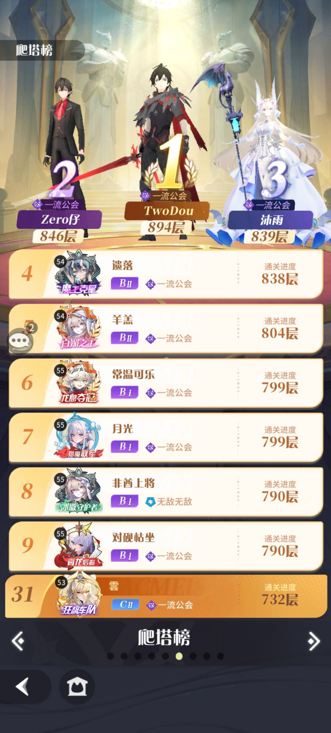最后是我的白嫖战力、阵容和爬塔进度,欢迎友好交流,本人圣堂爱好者,对圣堂之后的培养走向有问题的欢迎留言,我会尽量在空闲之余回答